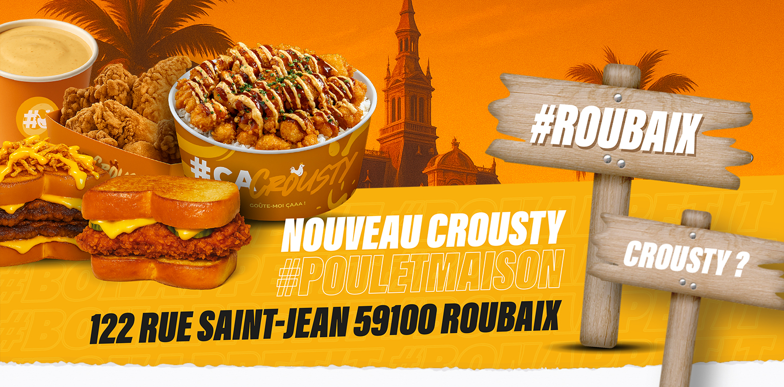 CA Crousty, c’est le spot incontournable pour tous ceux qui aiment le gros croustillant, le vrai goût, et les recettes qui font plaisir. Découvre nos Crousty Bowls, nos brioches façon burger ultra moelleuses, et nos tenders de poulet frais marinés maison. Une street-food moderne, généreuse, et 100% pensée pour régaler toute la France.